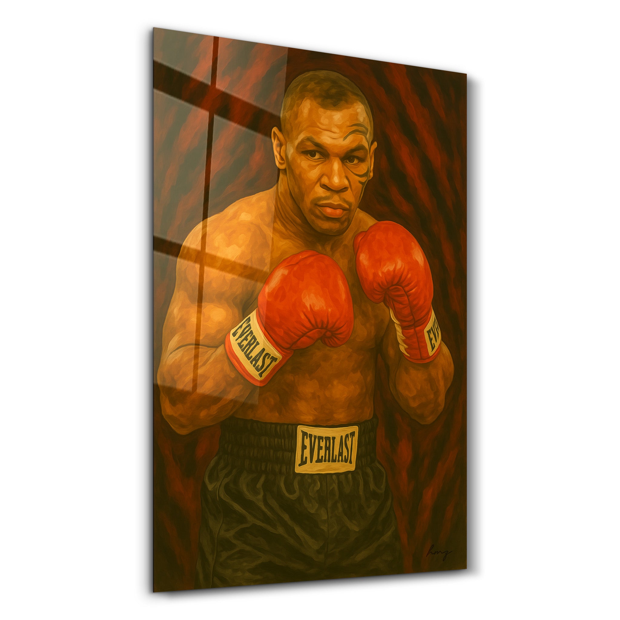 Rendered in HMZ’s vivid brushstroke style and printed on tempered glass, this artwork radiates strength, grit, and legacy. A knockout tribute to the embodiment of power and precision in the ring.