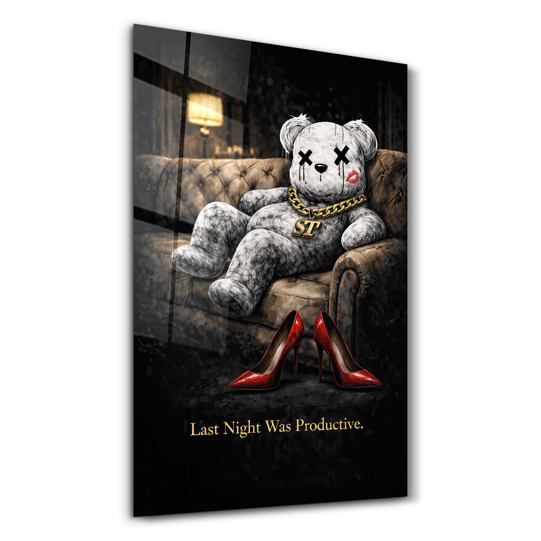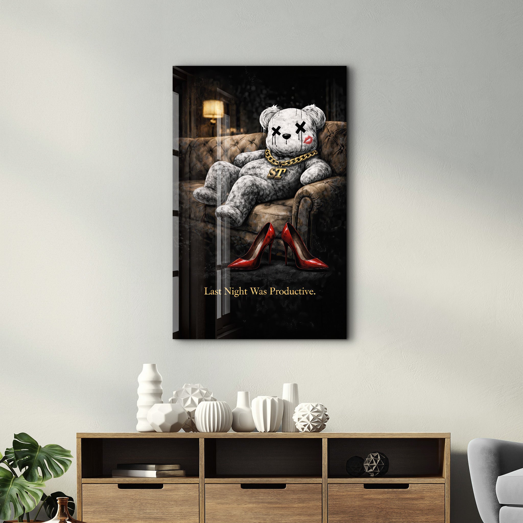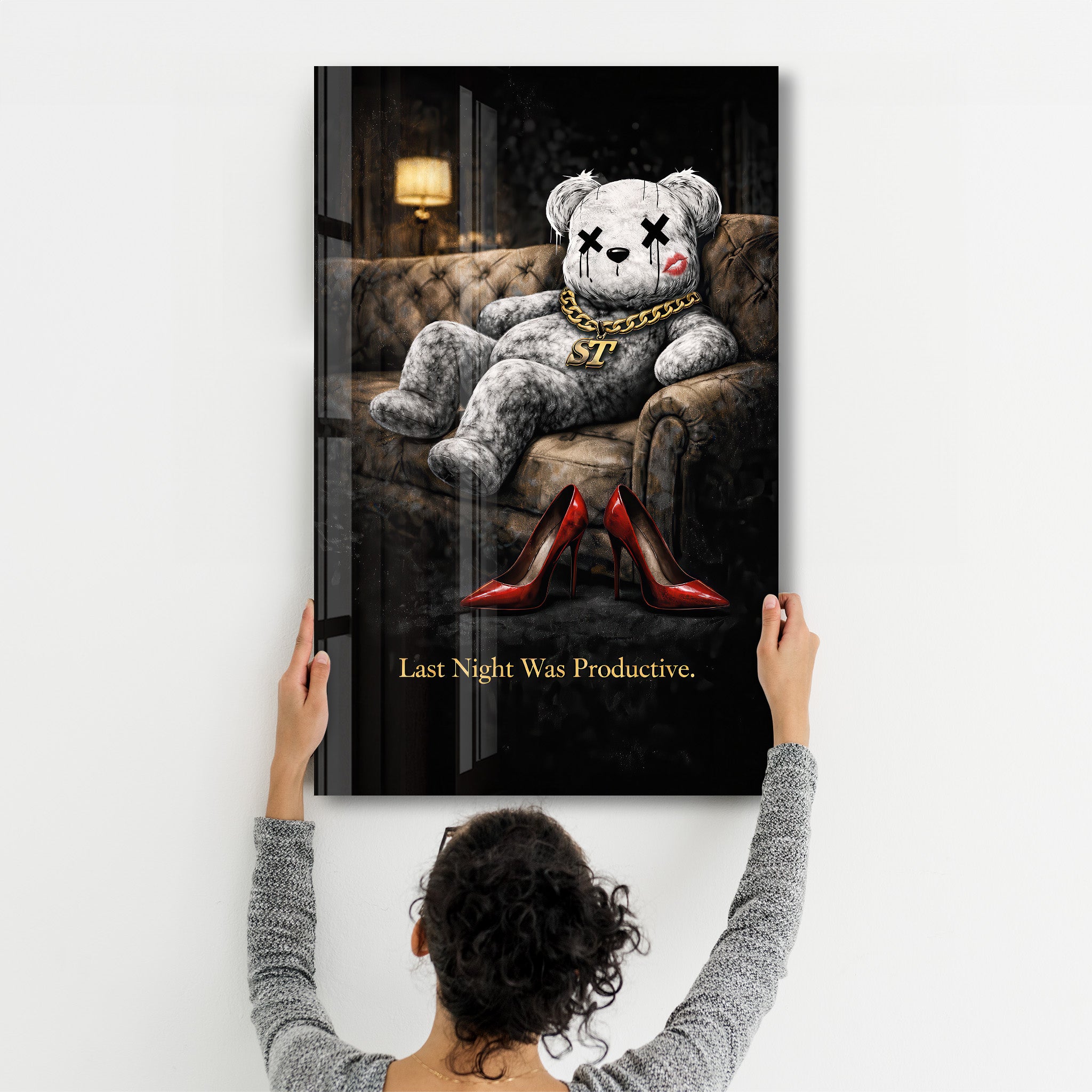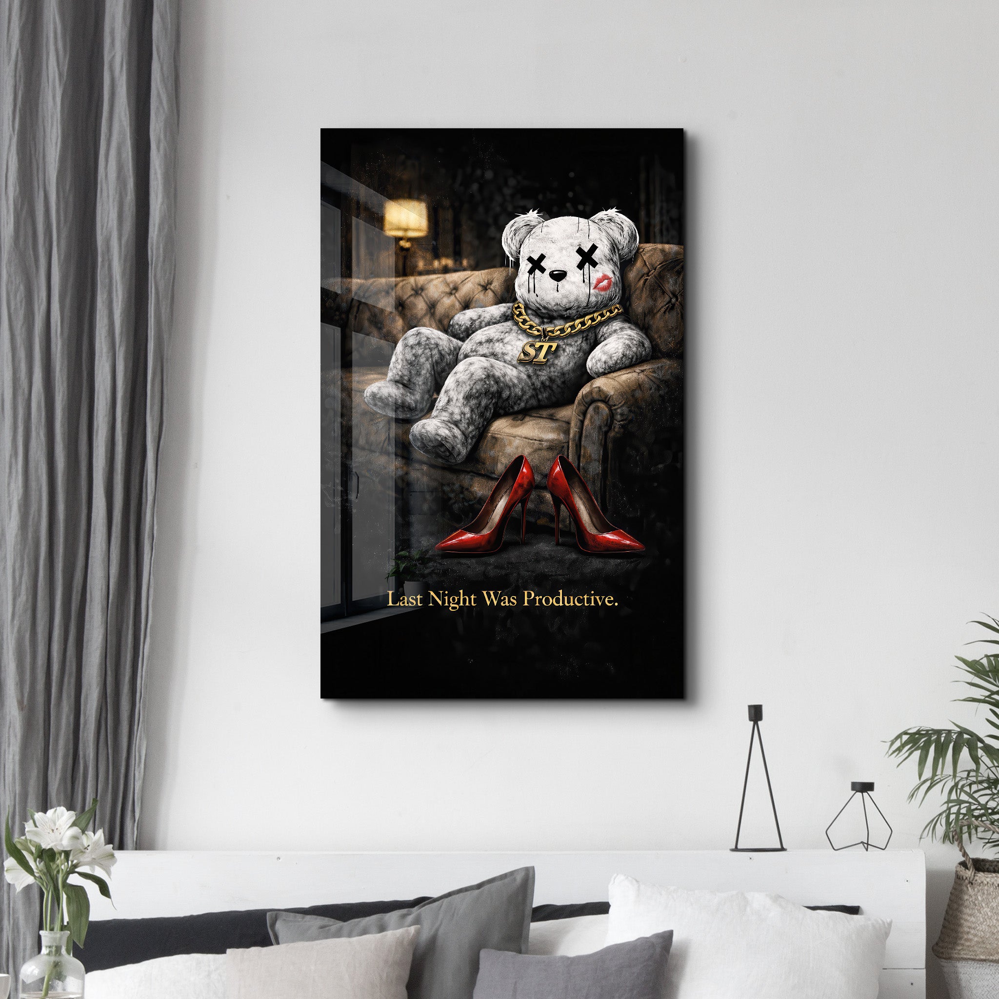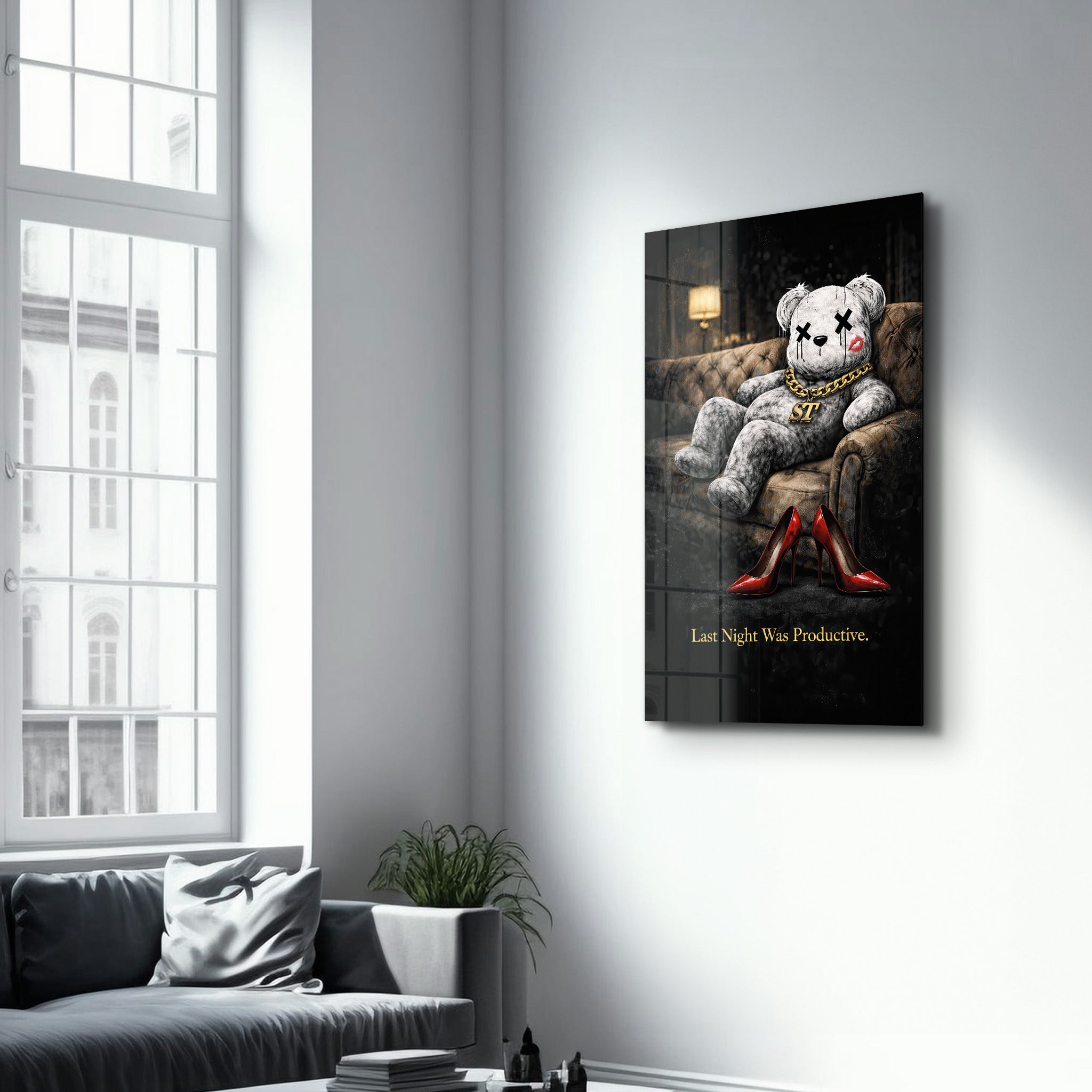 Last Night Was Productive x Sugar Teddy | Glass Wall Art