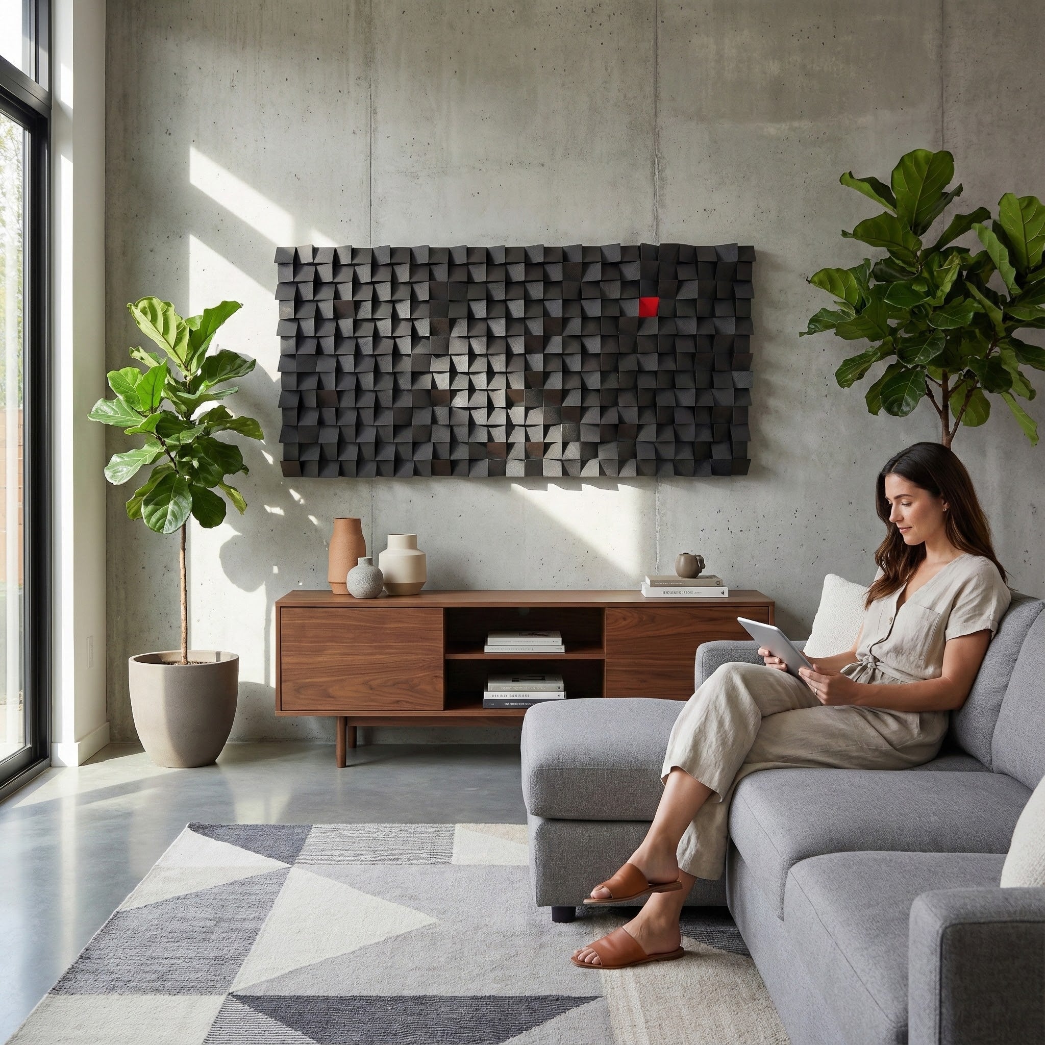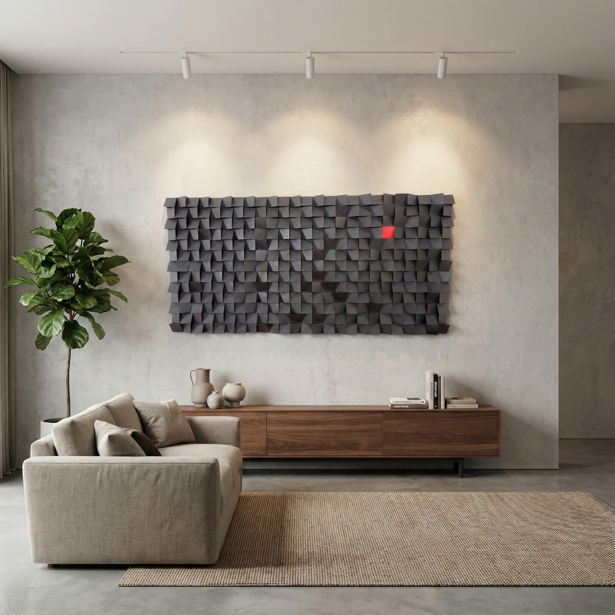- In this remarkable rustic wooden wall decor series, our designers cut each small cube by hand and sand them individually. These pieces are painted separately with premium coloring to enhance their beauty and shield the wood at its finest. After painting and drying, the parts are attached to a wooden surface by a maximum-hold adhesive.